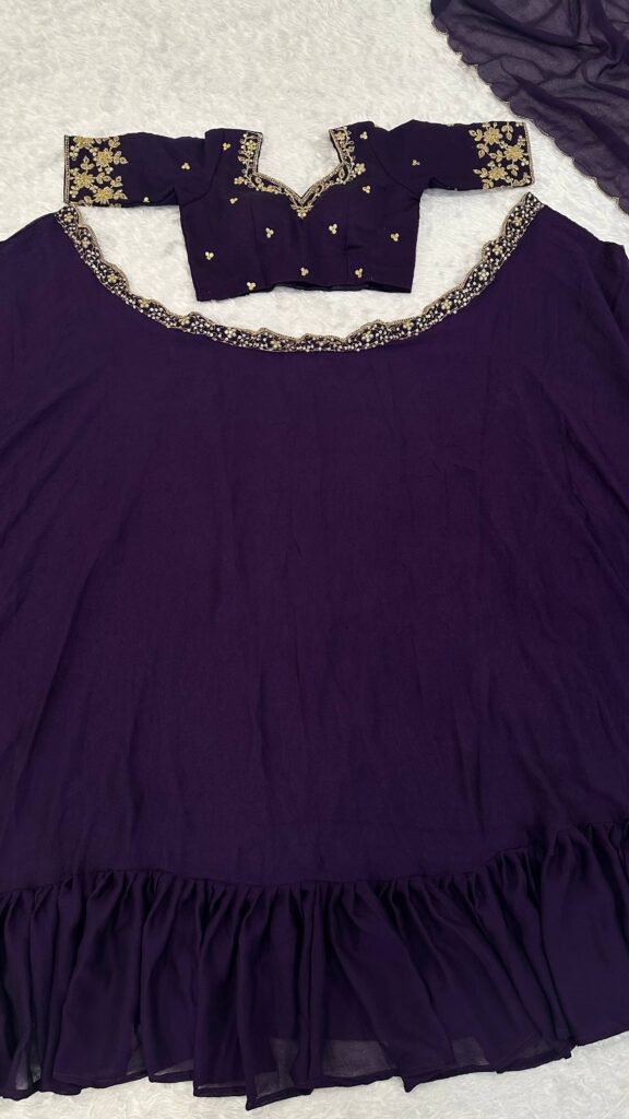 The Purple Party Wear Lehenga is ideal for women who want a refined yet eye-catching ethnic look. The royal color, elegant design, and premium craftsmanship make it a must-have wedding party lehenga for special occasions.