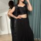 A radiant peach lehenga that glows with subtle shimmer and graceful design—perfect for your special moments.