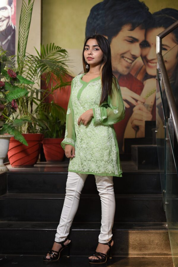 Add a touch of elegance and tradition to your wardrobe with this stunning Green Chikankari Kurti. Expertly crafted with intricate Chikankari embroidery, this kurti is a perfect blend of cultural heritage and contemporary style.