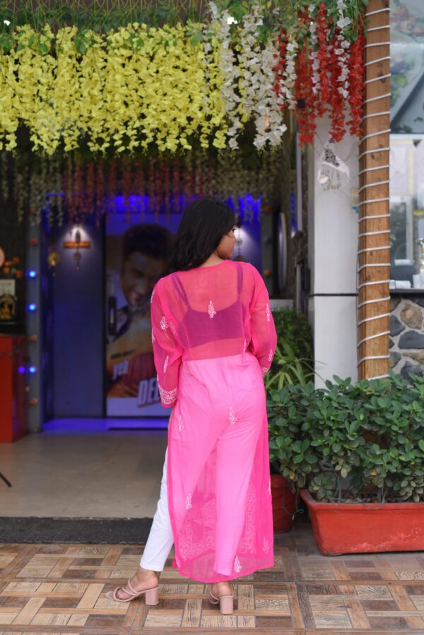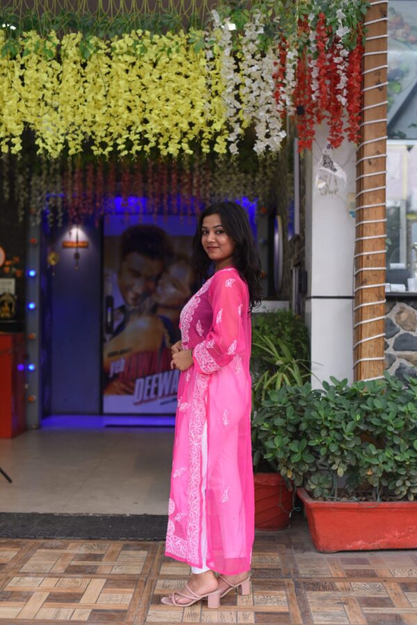 Add a touch of elegance and sophistication to your ethnic wardrobe with this Pink Chikankari Long Kurti. Crafted with attention to detail, this kurti blends traditional Chikankari embroidery with a contemporary designer flair, making it a perfect choice for special occasions and festive events.
