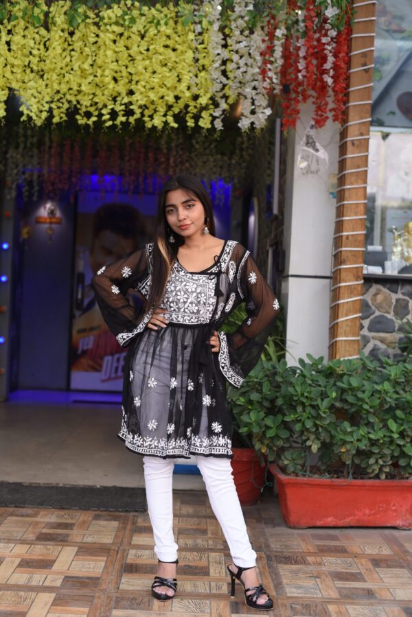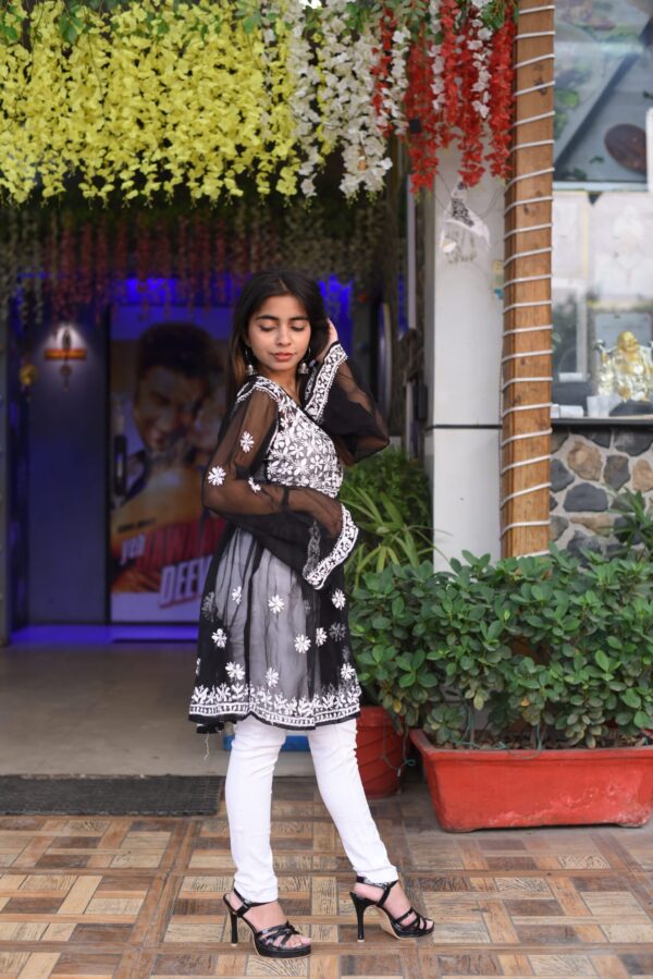 Discover the elegance of our Traditional Black Chikankari Kurti, featuring intricate hand-embroidered designs. Perfect for any occasion. Hand wash recommended.