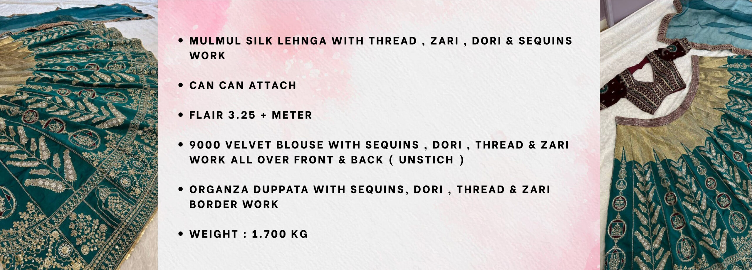 Premium Mulmul Silk Lehenga with thread, zari, dori & sequins work