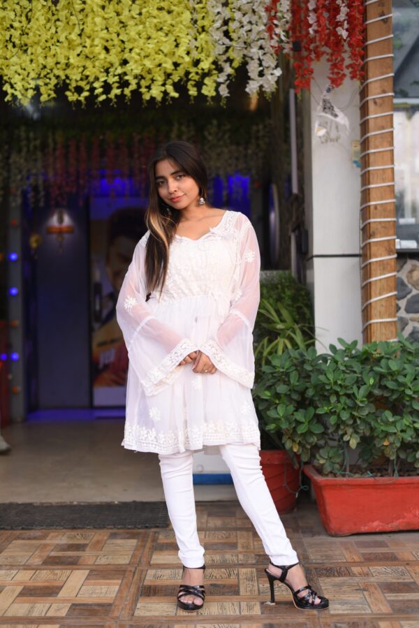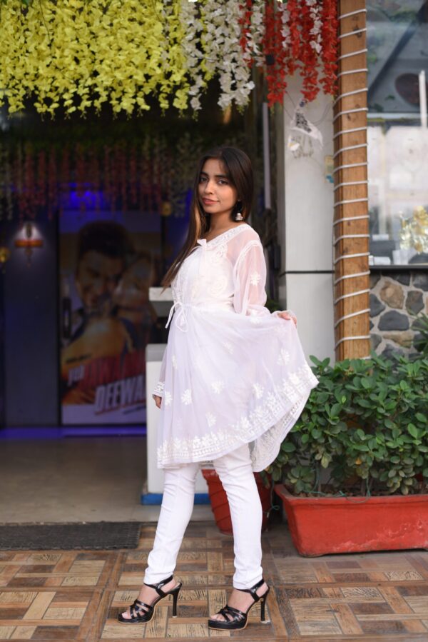 Elevate your ethnic wardrobe with this timeless white chikankari kurti, a masterpiece of traditional artistry and modern elegance. This kurti is meticulously crafted with intricate chikankari embroidery, featuring delicate floral and paisley patterns that epitomize grace and sophistication.